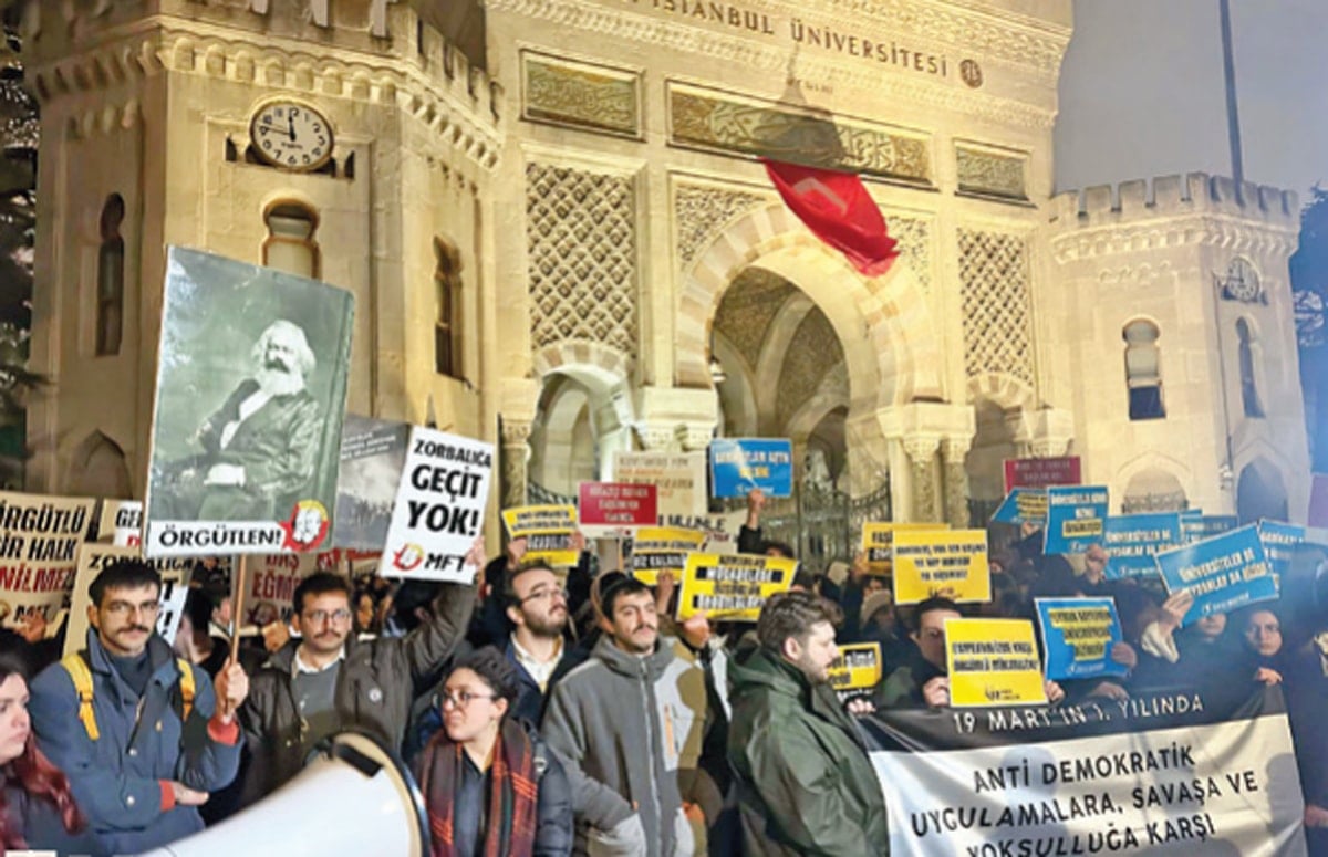 19 Mart operasyonunun birinci yıl dönümünde üniversite öğrencileri Beyazıt’ta toplandı, geçen yıl barikatın aşıldığı yerden geçerek Saraçhane’ye yürüdü. Meydanda yapılan açıklamada üniversitelere ve belediyelere yönelik kayyum politikaları ile muhalefete yönelik baskıların son bulması istendi, “Başta Ekrem İmamoğlu olmak üzere tüm siyasi tutsaklar serbest bırakılsın! KYK burslarına enflasyon oranında zam yapılsın! Tüm krediler bursa dönüştürülsün ve ihtiyacı olan her öğrenciye burs verilsin! Çocuk işçilik yasaklansın! Genç işçiliği güvenceli hale getirilsin! NATO’dan çıkılsın! Bütçe savaşa değil eğitime harcansın!” talepleri sıralandı.