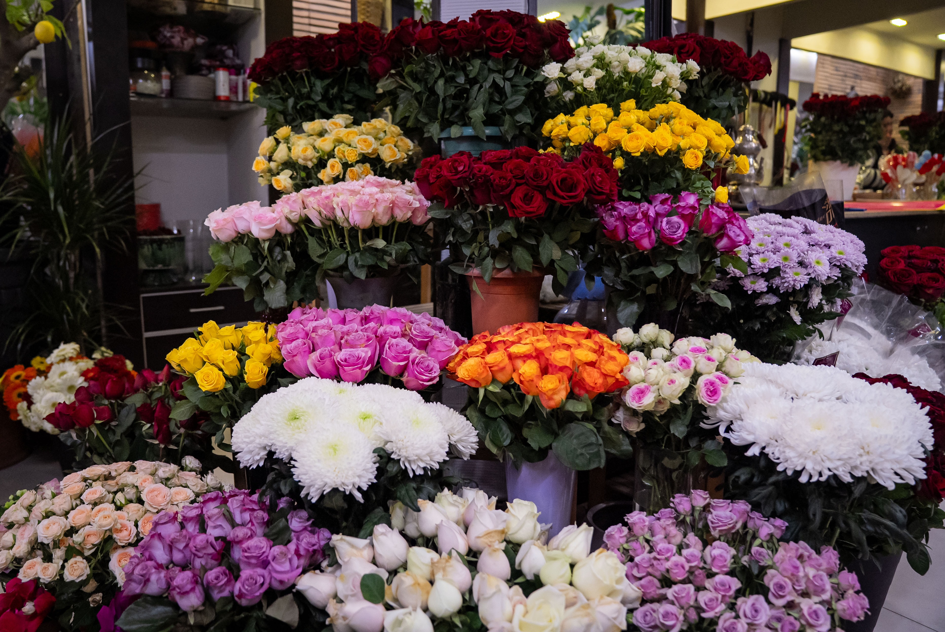 Kırmızı güller başta olmak üzere orkide, kazablanka, nergis, şebboy ve şakayık gibi birçok çiçek, sevgiliye hediye edilmeyi bekliyor.