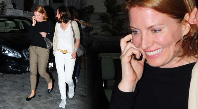 Kalabalık arkadaş gurubu ile geldiği mekandan yemek sonrası ayrılan Caroline Koç her zamanki güler yüzlü tavrı ile dikkat çekti. Telefon ile konuşurken bile devamlı güler yüzlü halini bir an olsun değiştirmeyen Caroline Koç bayan arkadaşları ile birlikte araçlarının olduğu yere doğru yürüdüler.