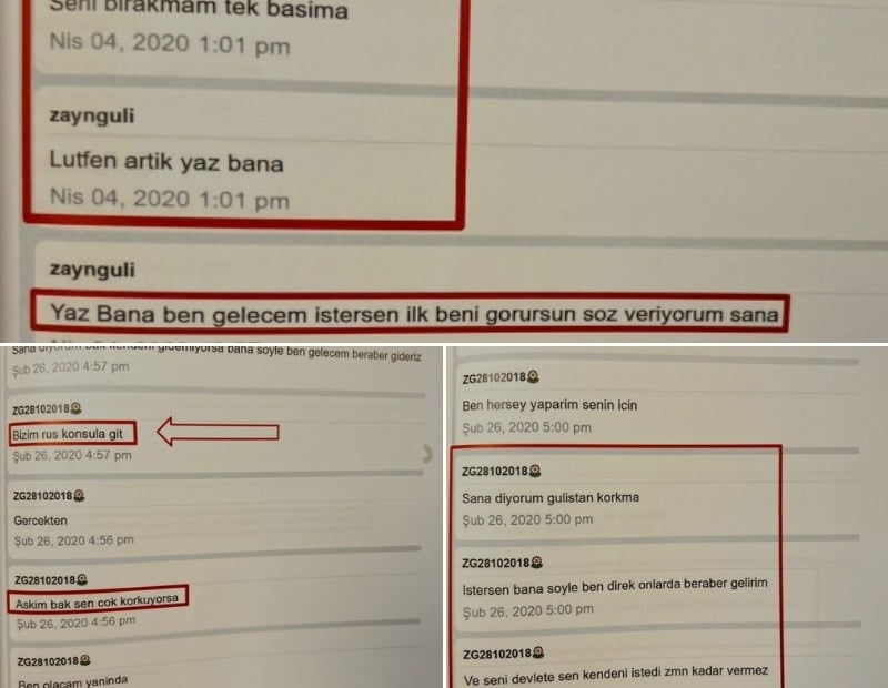 Mesajlarda Abakarov'un, "Seni zorla bir yerde tutuyorlar diye korkuyorum. Böyle bir şey varsa mesaj at. Ben geleceğim, gerekirse ölürüm ama seni kurtarmaya çalışırım" ifadelerini kullandığı görüldü.