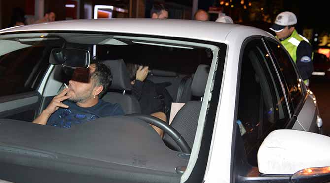 Bebek’te seyir halindeyken başka bir aracın sürterek çizmesi sonucu görevli trafik ekipleri eşliğinde sigorta tutanağı tutan özel şoförlerini aracın içinde bekleyen Ozan Çolakoğlu ve Gülşen flaşlar patlayınca ne yapacaklarını şaşırdı.