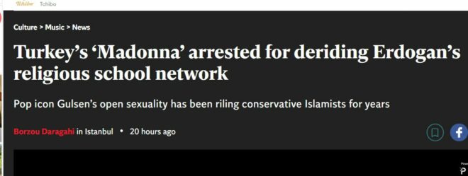 Al Jazeera: Orta Doğu üzerine haberler yapan Al Jazeera da haberi ilk sayfasından okurlarıyla paylaştı. Gazete, haberde, 46 yaşındaki şarkıcının özür mesajına ve AKP’den yükselen tepkilere yer verdi. Al Jazeera’da yer alan haberde, “Erdoğan ve iktidardaki AK Parti’nin önümüzdeki Haziran’da yapılacak genel seçimler öncesinde sandıklardaki düşüşü tersine çevirmek için muhafazakarların oylarına ihtiyacı var.” yorumunda bulundu.