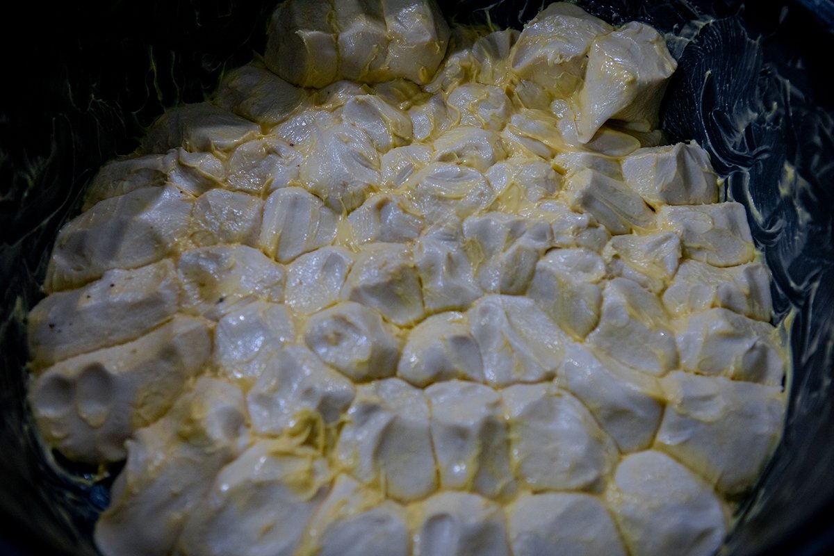 Olabildiğince geniş ve ince hale getirilen hamur, arasına yağ sürülerek tekrar küçük parçalar şeklinde dinlenmeye bırakılıyor, hazır kıvama gelince de siparişlere göre sacda kızartılarak ve üstüne yumurta kırılarak pişiriliyor.
