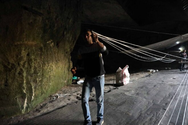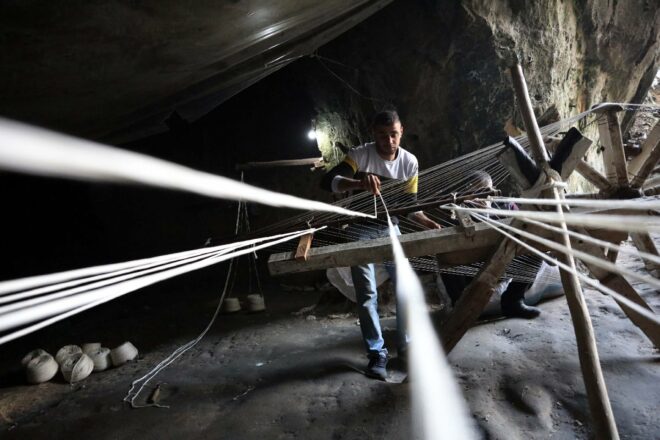 Kılınçoğlu Mahallesi'ndeki mağaralarda çalışan ustalar, fabrikalardan temin ettikleri atık ipliklerle mağaranın nemli ortamında, el yapımı tezgahlarda kendir üretiyor.