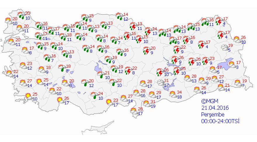 21 NİSAN PERŞEMBE HAVA DURUMU