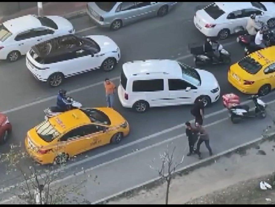 Kavga anları cep telefonu kamerasına saniye saniye yansıdı. Görüntülerde, motokurye ile diğer sürücünün kavga ettiği, ikilinin kavgaya yerde devam ettikleri ve çevredeki diğer sürücülerin araya girip olayı sonlandırdığı görülüyor. (DHA)
