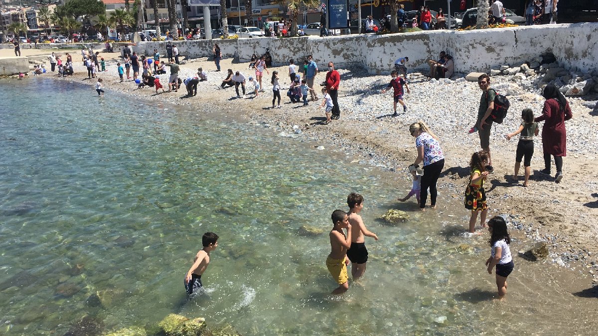 Muğla'nın Marmaris ilçesinde ise sokak, park, oyun bahçelerinin yanı sıra plajlar da yoğunlaştı. Özellikle sahil şeridinde oynayan çocuklar emniyet güçlerini de zor durumda bıraktı. Bölgede devriye gezen emniyet güçleri sahilde sık sık sosyal mesafeyi koruma anonsları yaptı.