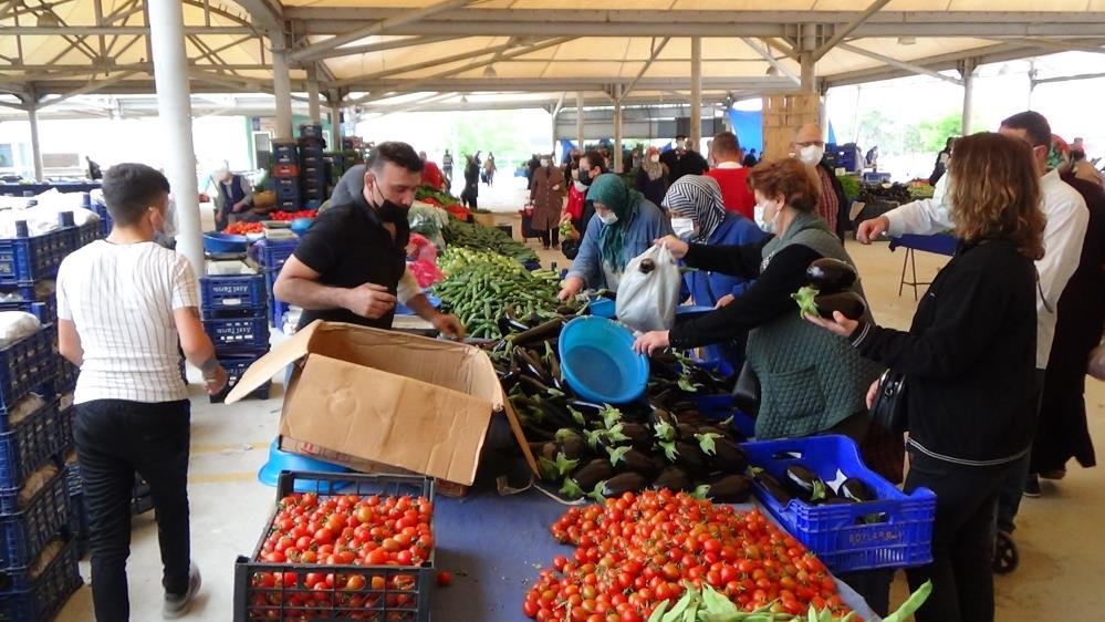 Bursa'nın Gemlik ilçesinde 8 gündür kapalı olan pazar yerleri açılınca, vatandaşlar akın etti. İzdihamın yaşandığı pazar yeri önünde zabıta ekipleri, vatandaşları kontrollerin ardından pazar yerine aldı.