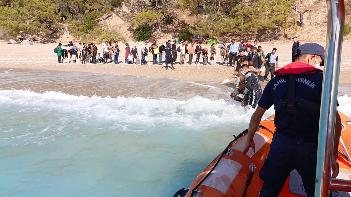 Muğla’nın Fethiye ilçesine bağlı karadan ulaşımın olmadığı Faralya Koyu’nda yaklaşık 5 gündür kendilerini İtalya’ya götürecek tekne gelmeyince aç susuz kalan göçmenler ormanlık alandın çıkarak sahile indi.