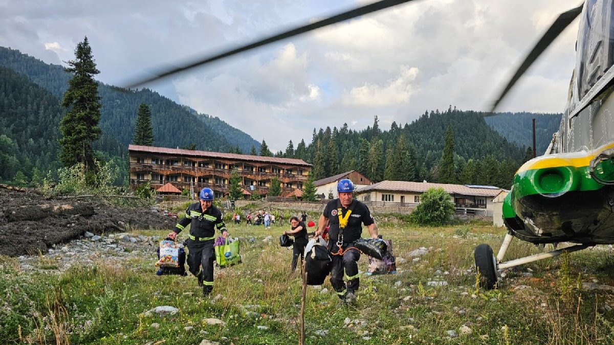 Sel ve toprak kayması nedeniyle yolların da hasar gördüğü bölgeye helikopterler ile kurtarma ekiplerin gönderildiği ifade edilen açıklamada, şimdiye kadar yaklaşık 70 kişinin daha güvenli yerlere gönderildiği bilgisi paylaşıldı.