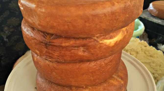 Yukarıda bahsettiğimiz Haçapuri’nin en temel malzemelerinden biri. Sulguni peyniri normal ve füme halde tekerlek olarak satılıyor. Fiyatı 10-15 TL arası. Asiditesi yüksek şaraplarla inanılmaz uyumlu giden bir peynir. Tekerlek tekerlek alın.
