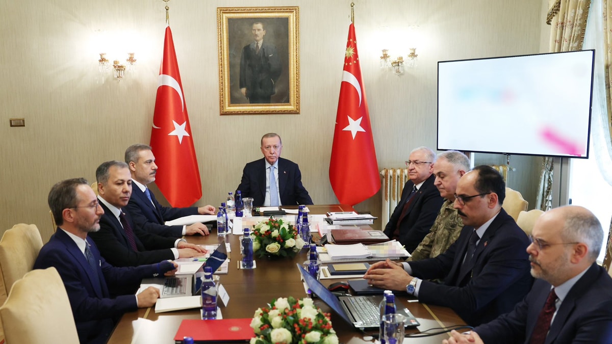 Toplantıya Dışişleri Bakanı Hakan Fidan, İçişleri Bakanı Ali Yerlikaya, Millî Savunma Bakanı Yaşar Güler, Genelkurmay Başkanı Orgeneral Metin Gürak, Millî İstihbarat Teşkilatı Başkanı İbrahim Kalın, İletişim Başkanı Fahrettin Altun ve Cumhurbaşkanı Dış Politika ve Güvenlik Başdanışmanı Akif Çağatay Kılıç katıldı.