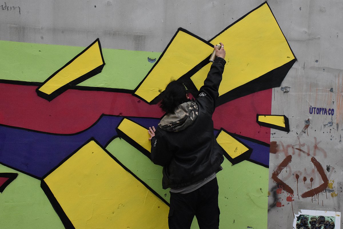 Sokak sanatında uluslararası alanda kullanılan dayanıklı bir sprey türünü tercih ettiğini aktaran Ayaz, sokağın kendisi "oyun alanı" olduğunu dile getirdi.