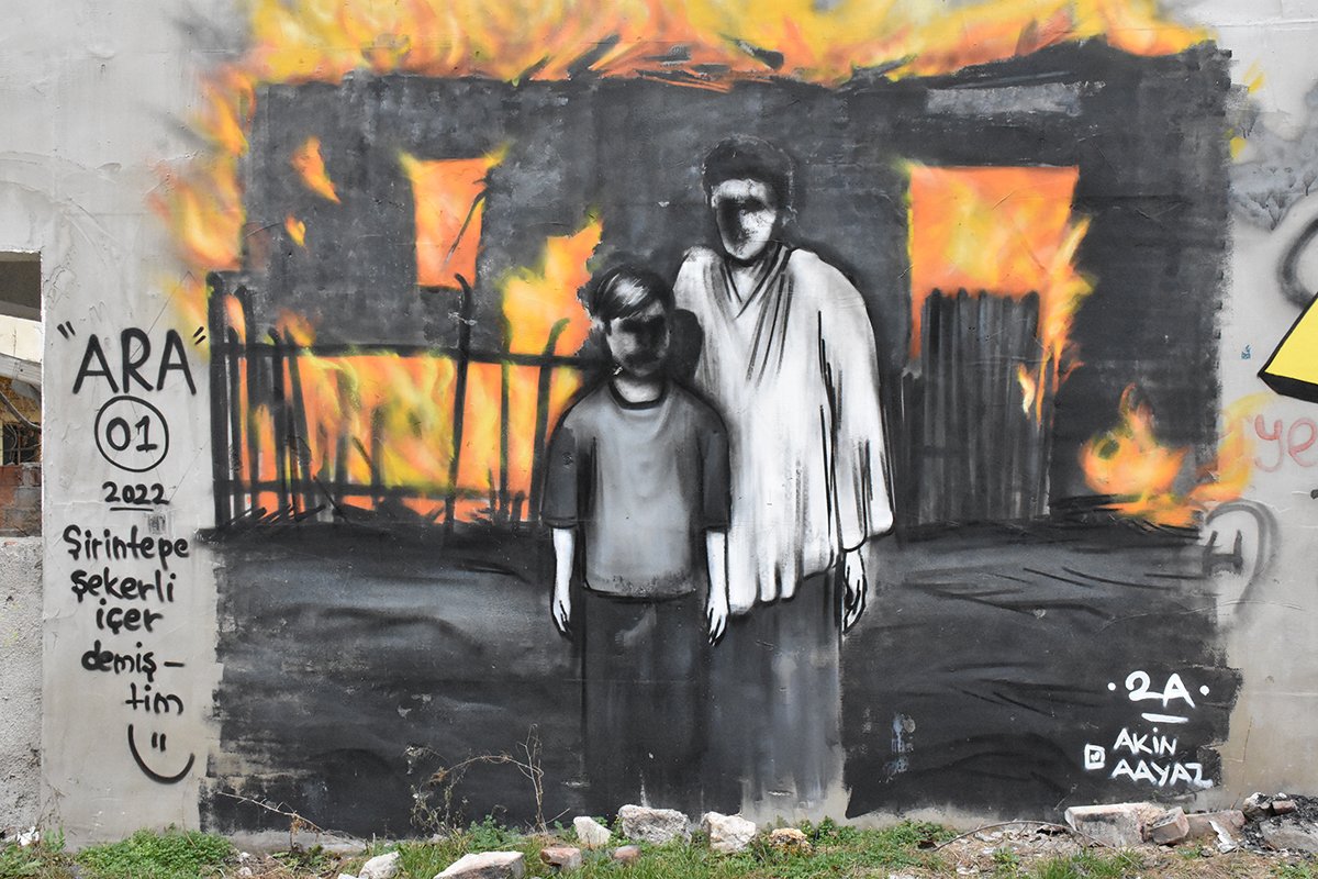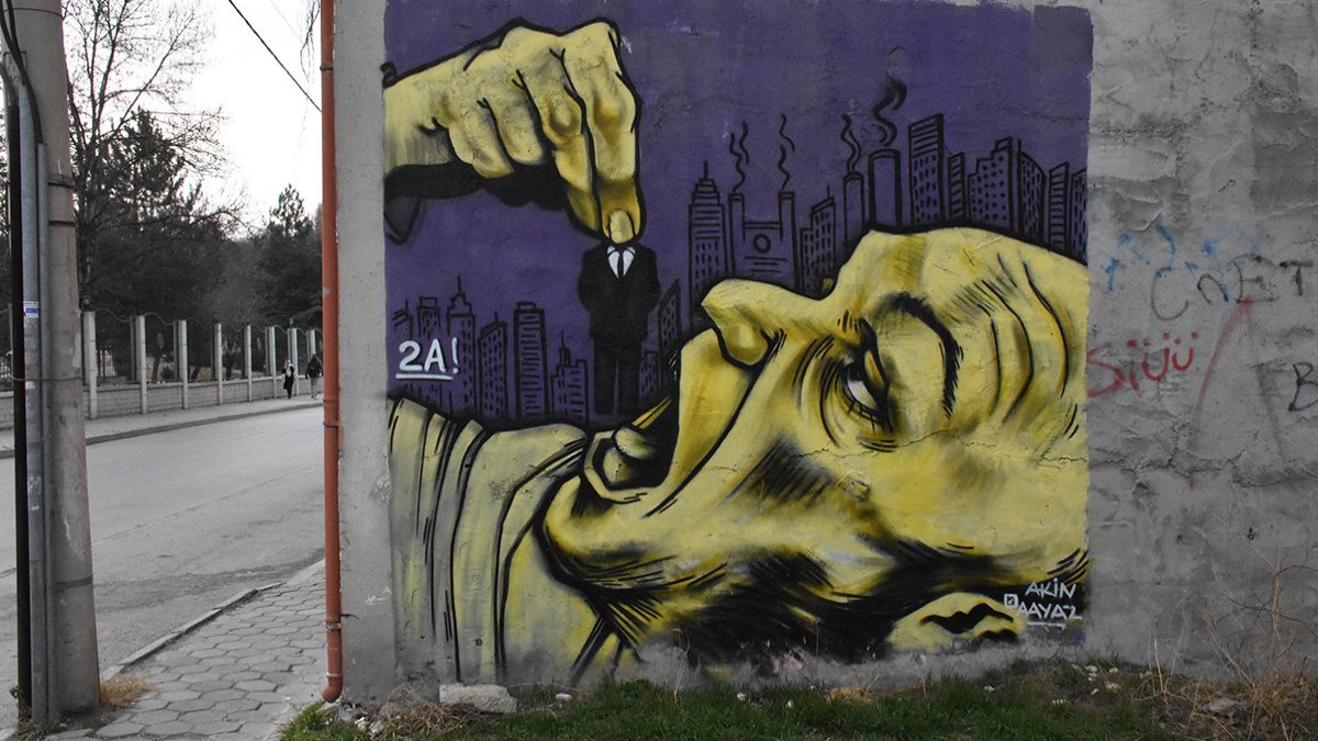 Çocukluğundan bu yana "grafiti" (duvar yazısı) ve "enstalasyon" (yerleştirme) sanatlarıyla ilgilenen 23 yaşındaki Akın Ayaz, gezdiği sokaklardan hoşuna giden duvarları, izin alarak sprey boyalarla renklendiriyor.