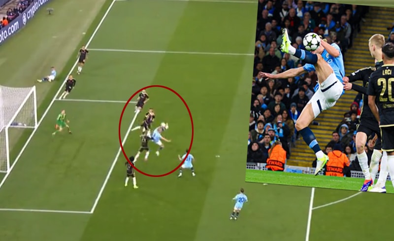 İlk yarıyı 1-0 önde kapatan Manchester City'nin 58'da geliştirdiği set hücumunda Savinho sağ taraftan ceza sahasına müthiş bir orta yaptı. 3 kişinin markajı altındaki Erling Haaland kendisine doğru gelen topa akrobatik bir topuk vuruşu yaparak golü attı.
