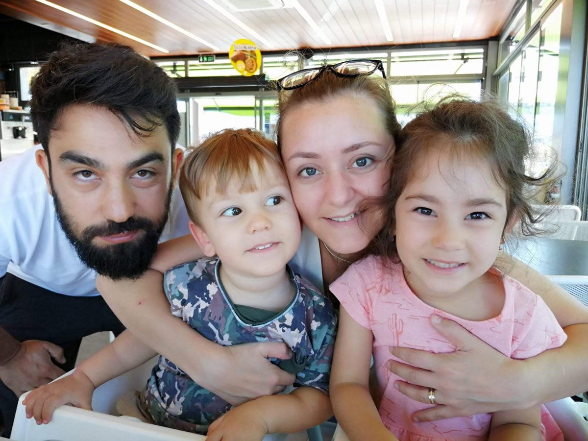 Yerebasmaz, eşi Yusuf ve çocukları Narin ve Karan’la.