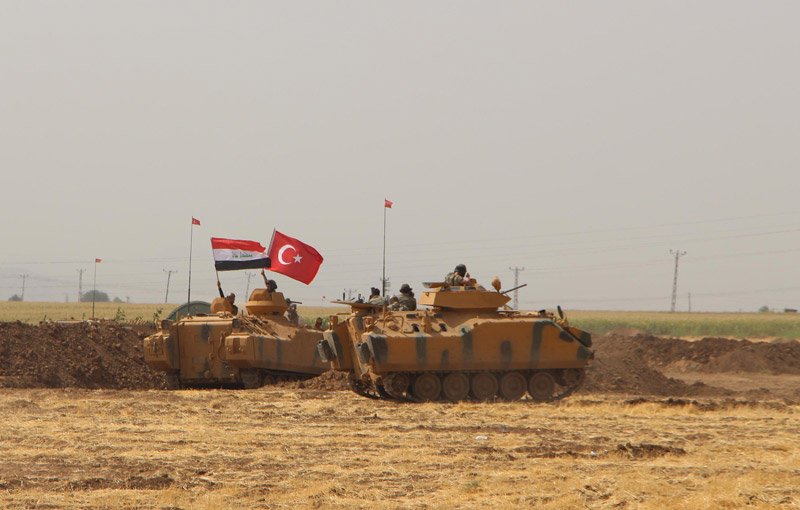 Silopi İlçesinde bulunan 172'nci Zırhlı Tugay Komutanı Tuğgeneral Bülent Temizer'in yönettiği tatbikatta, çadırdaki eğitimden çıkan Irak askerleri, Türk askerleriyle birlikte ellerinde Türk ve Irak bayraklarıyla zırhlı personel taşıyıcılara bindiler.