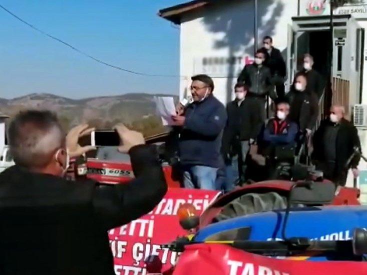 Çevre köylerden çiftçilerin de destek verdiği eylemde yaklaşık 100 traktörle konvoy yapıldı. Bazı traktörlere, "Çiftçinin kurduğu kooperatifi sat borcu kapat, Tarım Tefeci Kooperatifi İstifa" diye pankartlar asıldı.