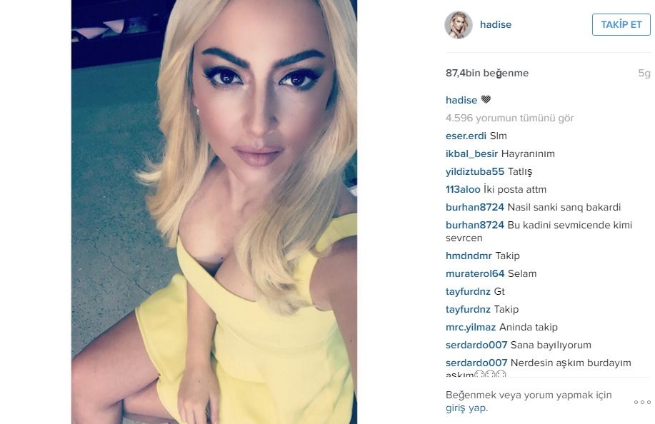 Şarkıcı Hadise'nin geride bıraktığımız gün sosyal medya hesabından paylaştığı kıyafeti büyük beğeni almış bu paylaşım kısa sürede binlerce beğeni almıştı.