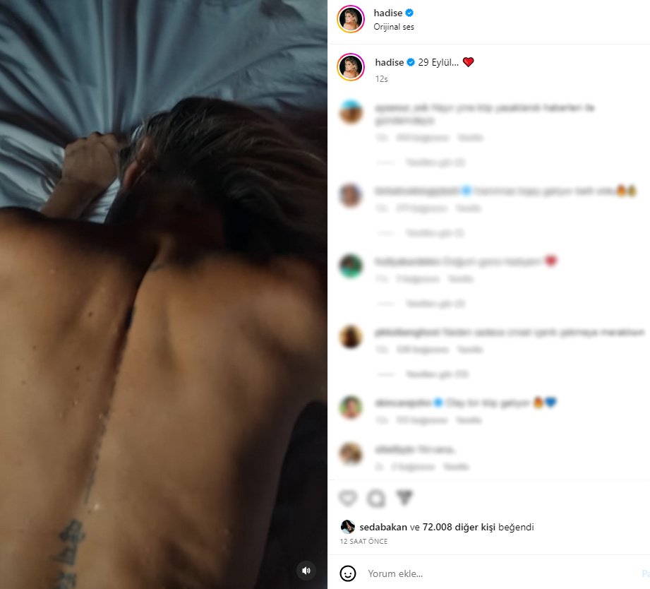Şarkıcı Hadise 29 Eylül'de yayınlanacak olan yeni şarkısı 'Sevmiyo'nun klibinden ilk kesiti Instagram hesabından paylaştı. Binlerce beğeni alan cesur klibe yorum yağdı.