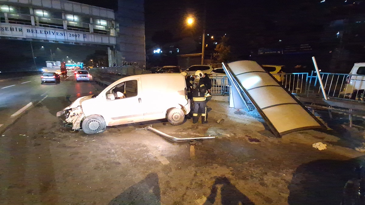 Çarpmanın şiddetiyle durak yıkılırken, araç da yola savruldu. 112 Acil Çağrı Merkezi'ne yapılan ihbar üzerine olay yerine polis, itfaiye ve acil sağlık ekipleri yönlendirildi.