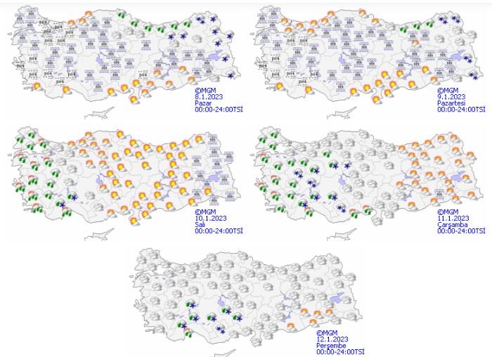 Meteoroloji Genel Müdürlüğü tarafından yapılan son değerlendirmelere göre bugün: Ülkemizin kuzey ve doğu kesimlerinin parçalı ve çok bulutlu, Orta Karadeniz kıyıları, Doğu Karadeniz, Doğu Anadolu'nun doğusu ile Sinop çevrelerinin yağışlı, diğer yerlerin az bulutlu ve açık geçeceği tahmin ediliyor.