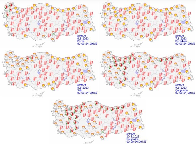 Meteoroloji Genel Müdürlüğü tarafından yapılan son değerlendirmelere göre: Ülkemizin kuzeybatı ve kuzeydoğu kesimleri ile Doğu Akdeniz’in parçalı yer yer çok bulutlu, Edirne, Çanakkale ve Osmaniye çevreleri ile Adana'nın kuzey ve doğu, Kahramanmaraş'ın güneybatı, Hatay’ın kıyı kesimlerinin yerel olmak üzere sağanak ve gök gürültülü sağanak yağışlı, diğer yerlerin az bulutlu ve açık geçeceği tahmin ediliyor.