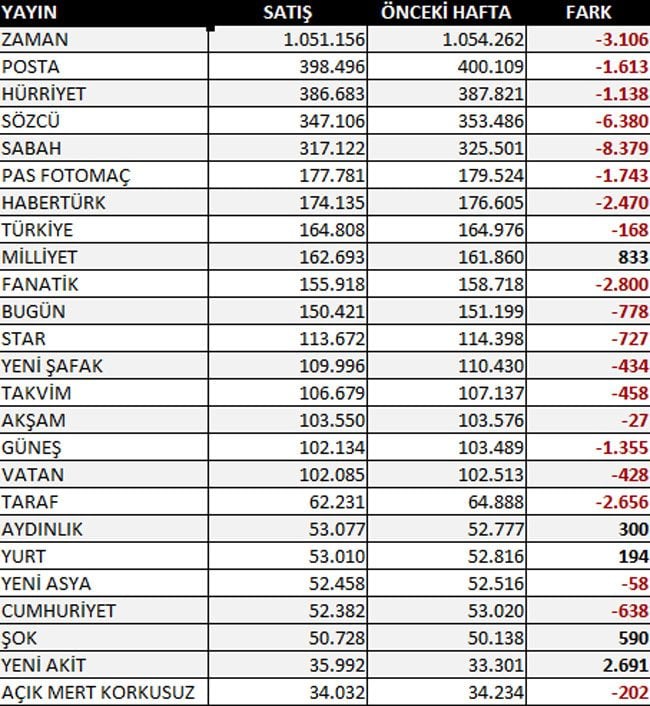 23 Haziran-29 Haziran haftası gazete tirajları açıklandı. Yaz aylarının başı itibariyle gazete tirajları düşüşe geçti. Gazetemiz SÖZCÜ geçtiğimiz haftayı ortalama 304 bin 106 ile kapattı. İşte geçtiğimiz haftanın gazete tirajları...