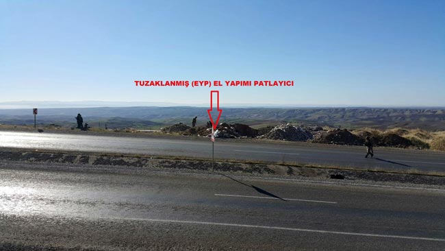 Diyarbakır Valiliği, Silvan İlçesi ile Batman karayolunun 2'nci kilometresindeki Yeniköy Mevki'inde, yol kenarına PKK'lılar tarafından tuzaklanan el yapımı patlayıcının imha edildiğini açıkladı.