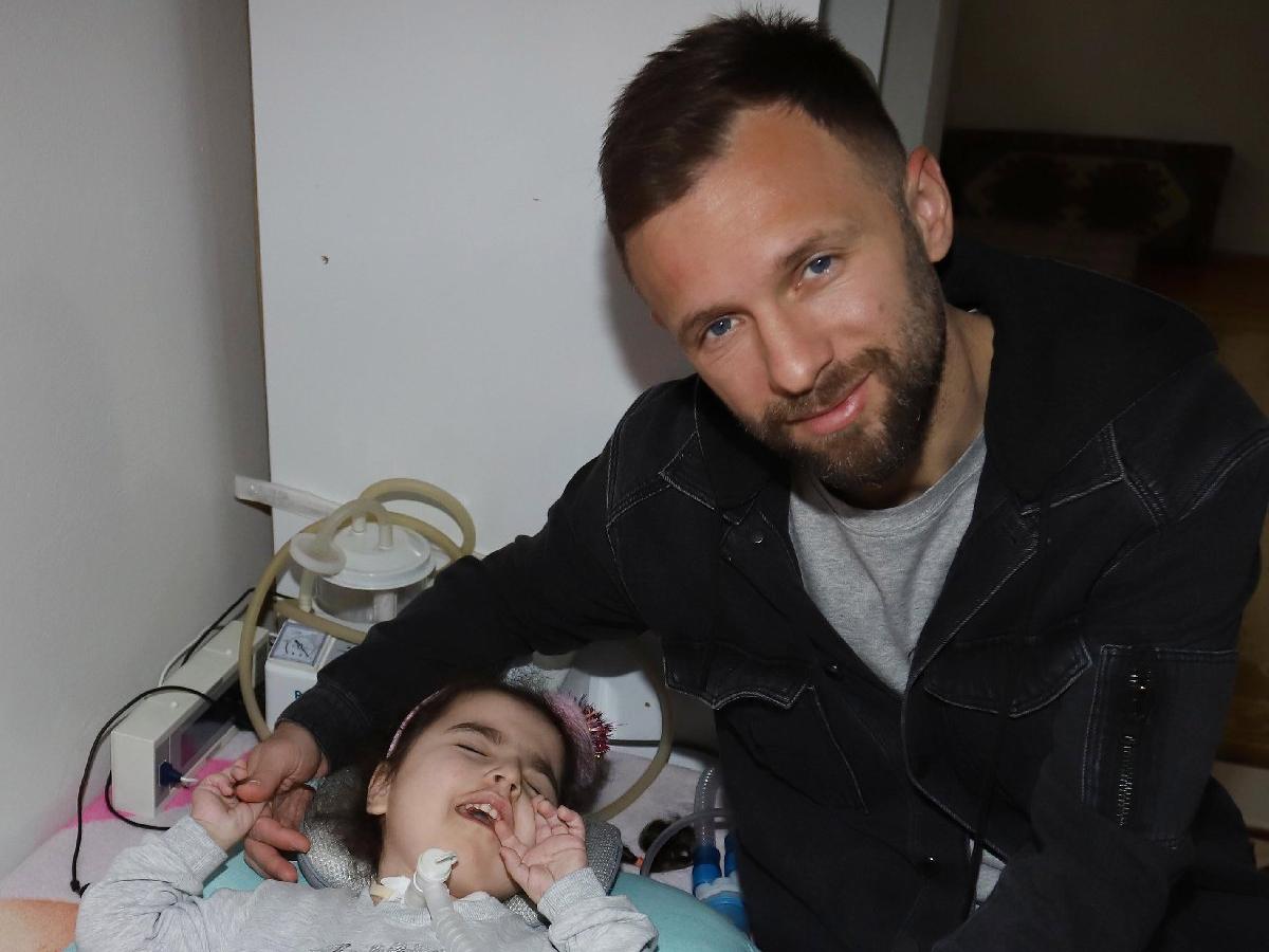 Antalyaspor'un başarılı oyuncusu ve takım kaptanı Hakan Özmert ve antrenör Ertuğrul Arslan, Spinal Müsküler Atrofi (SMA) hastası Ebrar'ı evinde ziyaret etti.