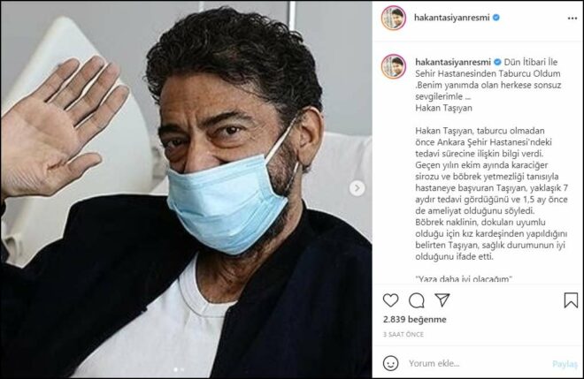 Geçen yıl karaciğer sirozu ve böbrek yetmezliği tanısıyla Ankara Şehir Hastanesi'ne başvuran sanatçı Hakan Taşıyan'ın, 23 Ekim 2020'de tedavisine başlanmıştı.