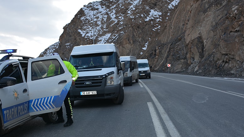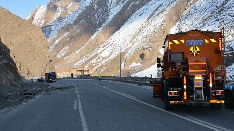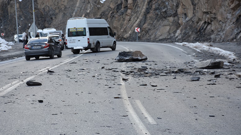 Hakkari'de dağdan kopan kaya, kara yolunda panik yarattı.