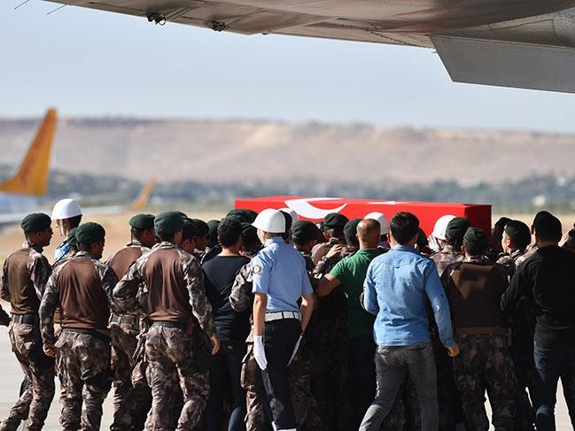 Şehit polisin eşi Hülya Yılmaz(ortada) - AAAcılı eş, şehidin naaşı uçaktan indirilirken asker selamı verdi. Eşinin yakasına taktığı fotoğrafını öpen Yılmaz, sık sık "Şehitler ölmez vatan bölünmez, vatan sana canım feda" sözlerini tekrarladı.