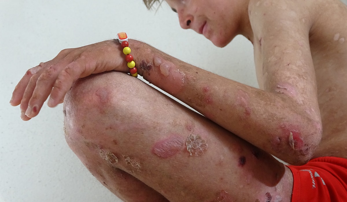 Besna Yaşar (34) ise çocuğunun bu durumuna çok üzüldüğünü söyleyerek, "Çocuğum doğuştan beri böyle. Doktorlar 'Bülloz Pemfigoid' hastalığı teşhisi koydu. Kışın iyi fakat yazın sıcak hava nedeniyle yaraları daha belirgin ve kötü oluyor. Yazın günde 5 defa elbiselerini değiştiriyorum. Okulda arkadaşları onunla dalga geçiyor. Tedavisi için destek bekliyoruz" diye konuştu.