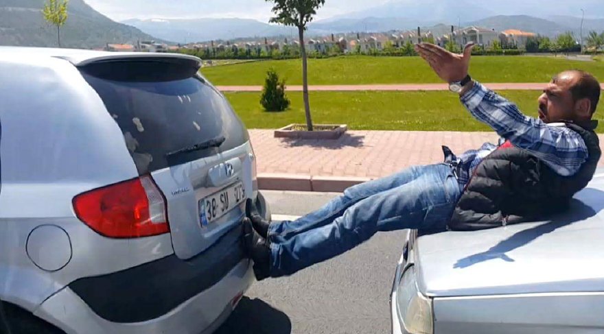 Kent merkezinden, Talas İlçesi yönüne giden Komandolar Caddesi'nde hareket halindeki otomobilin ön kaputuna oturan kişiyi görenler şaşırdı. Ön kaputun üzerinde oturan kişinin önünde giden diğer otomobili yaklaştıkları zaman zaman dokunarak ittiği dikkat çekti. Arızalı aracın tamire götüren iki arkadaşın, tamponlarının zarar görmemesi için bu yolu bulduğu ifade edildi.