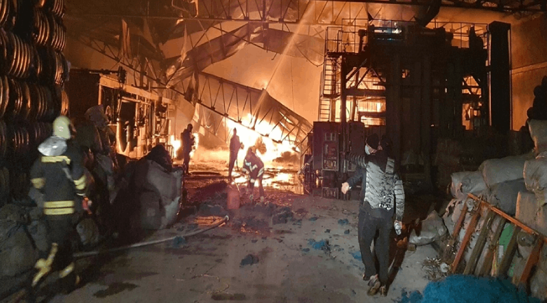 Yangında, içeride bulunan halılar, üretimde kullanılan malzemeler ve makineler büyük oranda zarar gördü.
