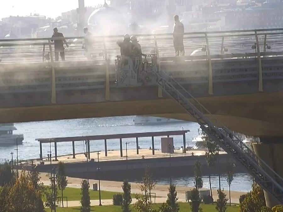 Haliç metro köprüsü üzerinde kablolar yandı, seferler durdu