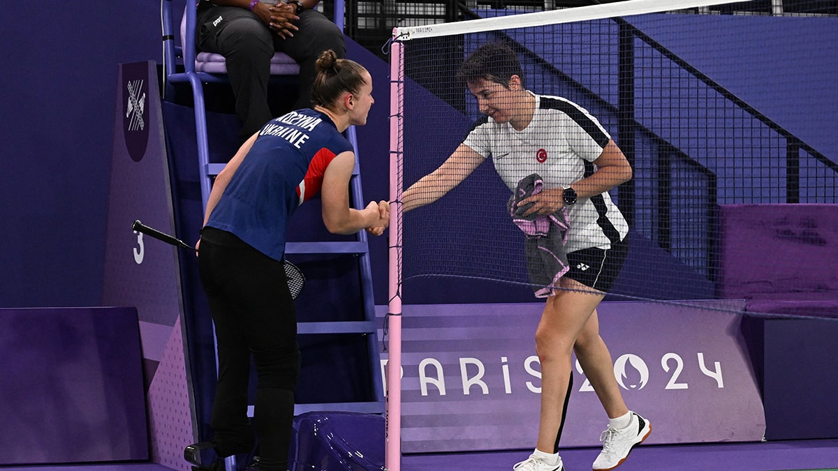 Porte de La Chapelle Arena'daki badminton müsabakalarında Halime, çeyrek finalde Ukraynalı sporcu Kozyna ile karşılaştı.