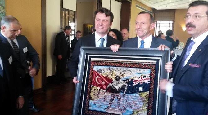 Avustralya Başkonsolosluğu ev sahipliğinde İstanbul'da verilen davette, bir halı firmasının sahibi olan Erhan Ör, Avustralya Başbakanı Tony Abbot'a halı hediye etti ve ipek halı ile ilgili bilgi verdi. Ör, desenini özgün olarak kendisinin hazırladığını, halının Han Halı tezgahlarında dokunduğunu söyledi. Halının santimetrekaresinde 144 çift düğüm bulunduğunu ve dokumasının da yaklaşık 8 ay sürdüğünü belirten Erhan Ör, tasarımın orta kısmında belirgin bir biçimde 'Mehmetçiğe Saygı Anıtı' olarak bilinen heykel resmedildiğini belirtti.