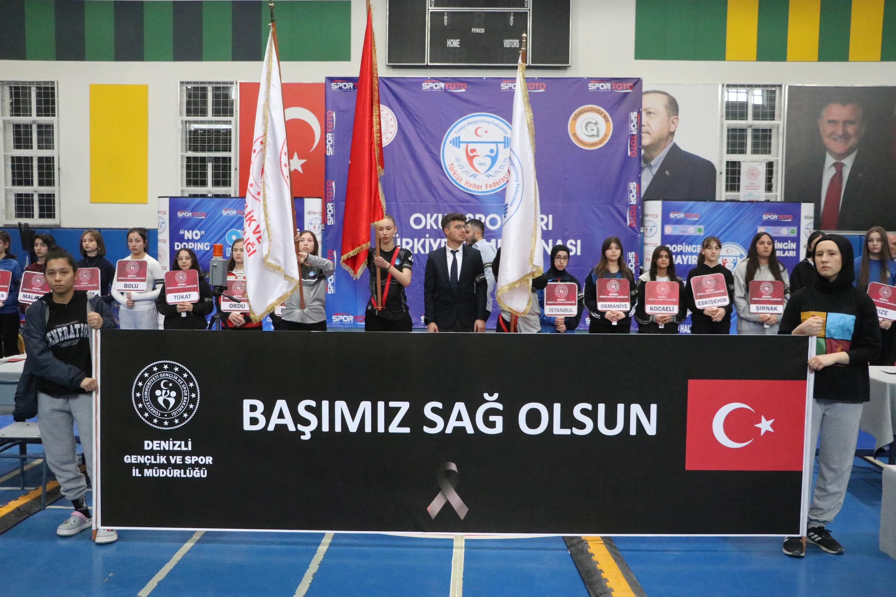 Denizli'de Türkiye Halter Federasyonu tarafından Kınıklı Spor Salonu'nda düzenlenen Okul Sporları Genç Kızlar Halter Türkiye Şampiyonası'nın açılış seremonisi yapıldı.