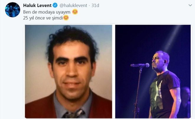 Haluk Levent, 25 yıl önce çekilen gençlik fotoğrafı ile bugünkü halini Twitter'da paylaştı.