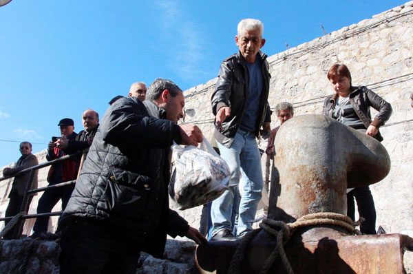 Teknenin önünde kuyruğa girenler, küreklerle poşetlere doldurulan hamsiyi aldı. 5 liraya aldıkları 5'er kiloluk poşetlerle evlerine gidenler, arkadaşları ve komşularını da telefonla arayarak haber verdi. Yoğun ilgi sonunda teknedeki hamsi bir kaç saat içinde tükendi.
