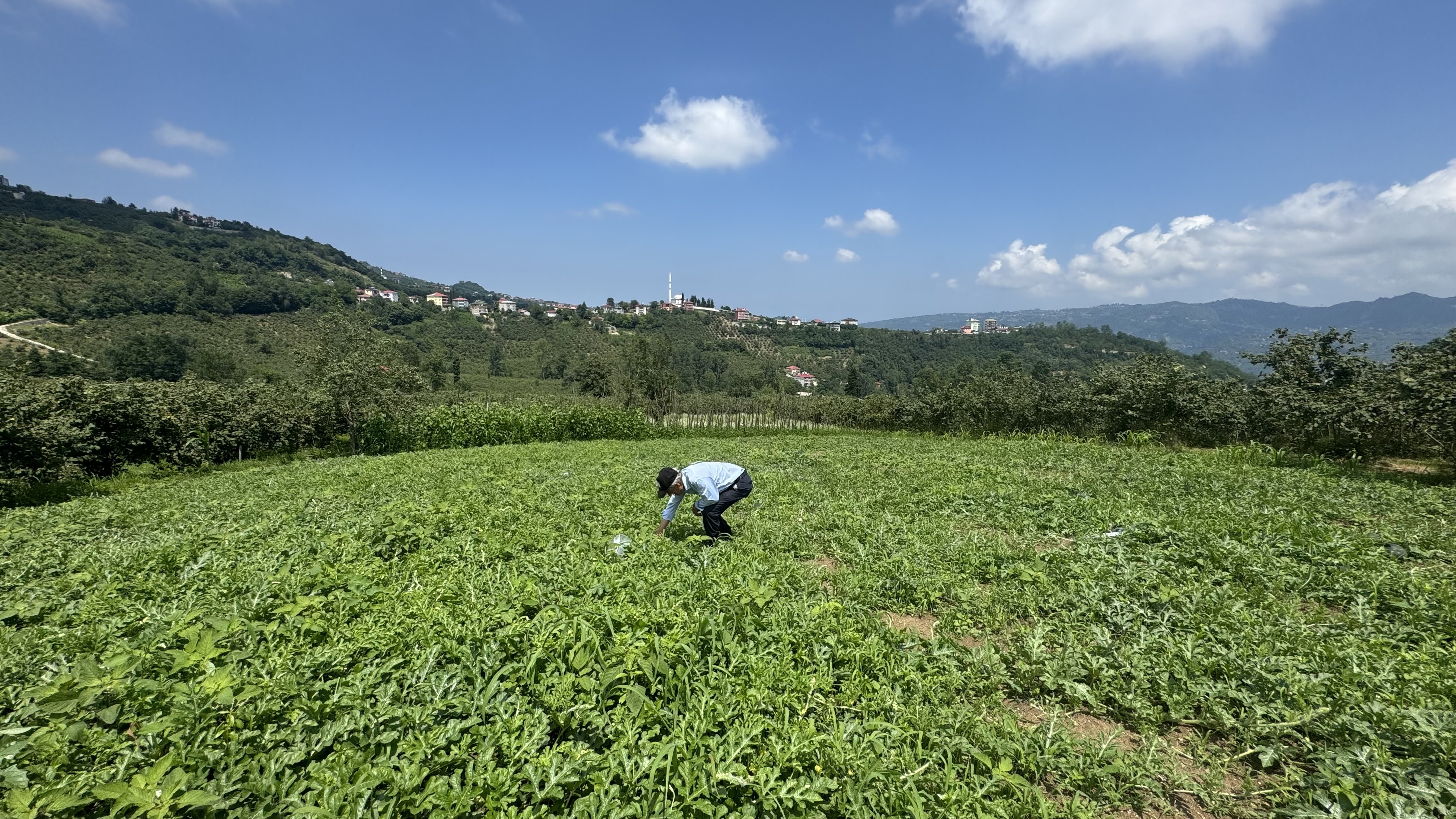 Ortahisar ilçesine bağlı Akoluk Mahallesi'nde yaşayan 59 yaşındaki Yazıcı, 10 yıl önce kendisine ait 3,5 dönümlük fındık bahçesinden verim alamayınca karpuz üretmeye karar verdi.