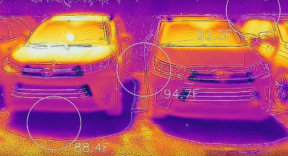 Video içerisinde güneş altında beklemiş olan açık ve koyu renkli otomobiller var. Fahrenayt olarak çekilen videoda koyu renkli otomobillerin motor kaputları 70 derece sıcaklığa hatta üzerine kadar çıkabiliyor. Hemen yanında bulunan açık renkli otomobilin motor kaputu ise 40-50 derece arasında gözüküyor.