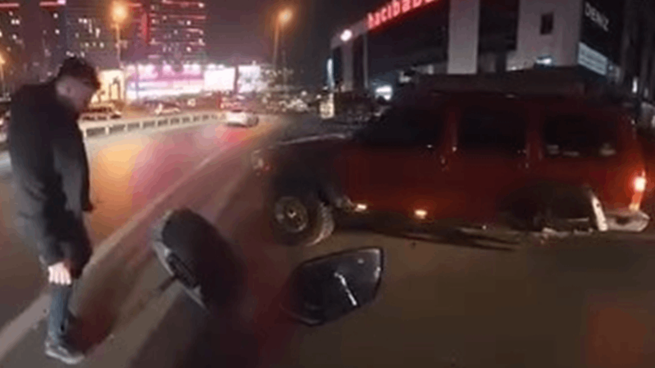 Haramidere'den D-100 karayoluna doğru giden bir cipin lastiği koptu. Fırlayan lastik şans eseri başka araca çarpmadan yol kenarındaki bariyere çarptı. O anlar seyir halindeki bir motosikletlinin kask kamerasına yansıdı.