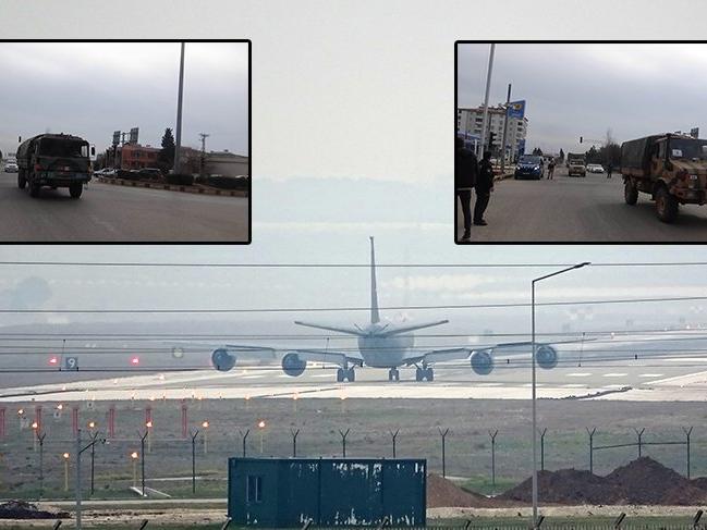 Hatay'ın Suriye sınırı yakınlarında bulunan hava üssüne mühimmat ve asker takviyesi yapıldı.