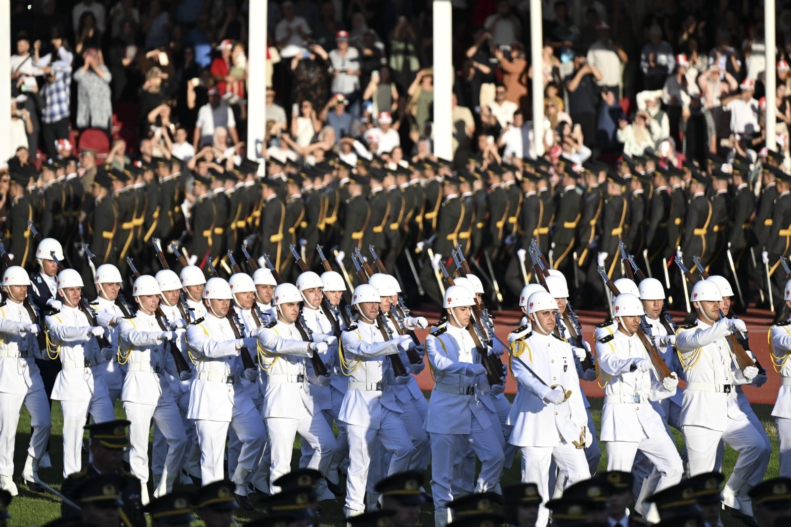 Kara, Deniz ve Hava Harp Okullarının ortak mezuniyet töreni bu yıl yoğun güvenlik önlemleri altında gerçekleşti. Geçen yıl Kara Harp Okulu mezuniyet töreninde öğrenciler, dönem birincisi öncülüğünde kılıçlarını havaya kaldırıp “Mustafa Kemal’in askerleriyiz” sloganını atmış ve ant içmişti.