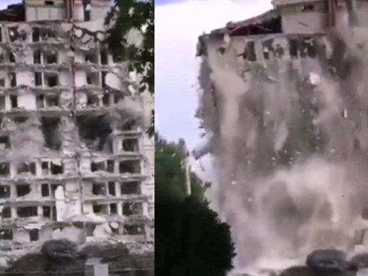 İzmir'de 30 Ekim 2020'de meydana gelen 6,6 büyüklüğündeki depremde ağır hasar gören ve yıkımı için karar verilen bina, kontrollü yıkım yapılmak istenirken büyük bir gürültüyle çöktü.