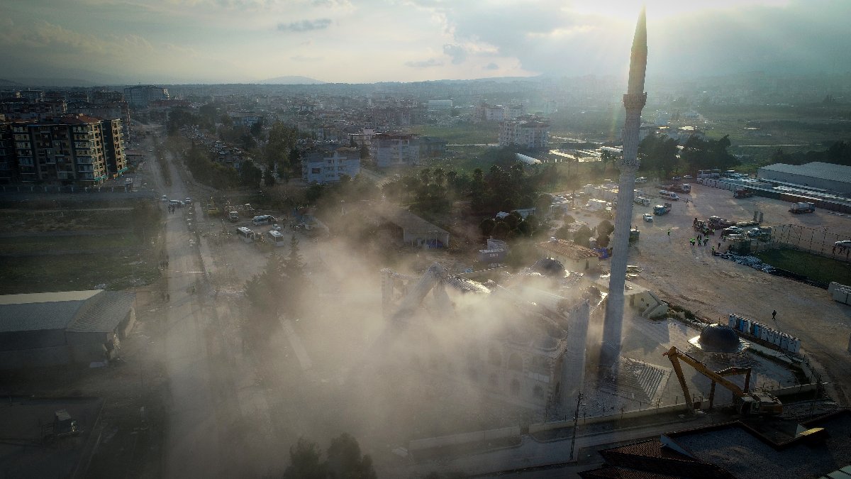 Kubbesi ibadet alanının üzerine çöken, minarelerinden 2'si yıkılan ve daha önce güvenlik gerekçesiyle boşaltılan camide oluşan hasar, 20 Şubat'ta Defne merkezli 6,4 büyüklüğündeki depremle iyice arttı.