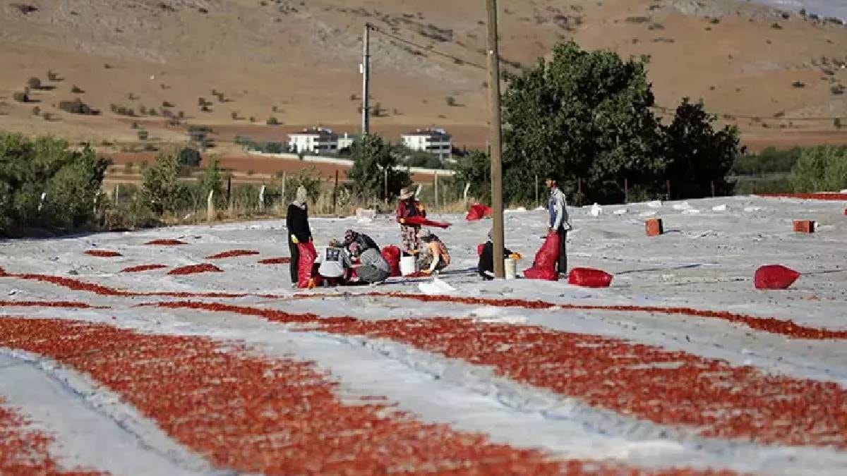Tarlalardan toplanan domatesler, çoğunluğu kadınlardan oluşan mevsimlik işçilerin yoğun emeğiyle işleniyor. İkiye bölünüp tuzlanan domatesler, bezlerin üzerine serilerek günlerce güneşte bekletiliyor. Bu süreçte ürünlerin başında gece gündüz nöbet tutuluyor. Kurutulan domatesler, batı illerindeki firmalar aracılığıyla başta İtalya olmak üzere İngiltere, Almanya ve Fransa’ya ihraç ediliyor.